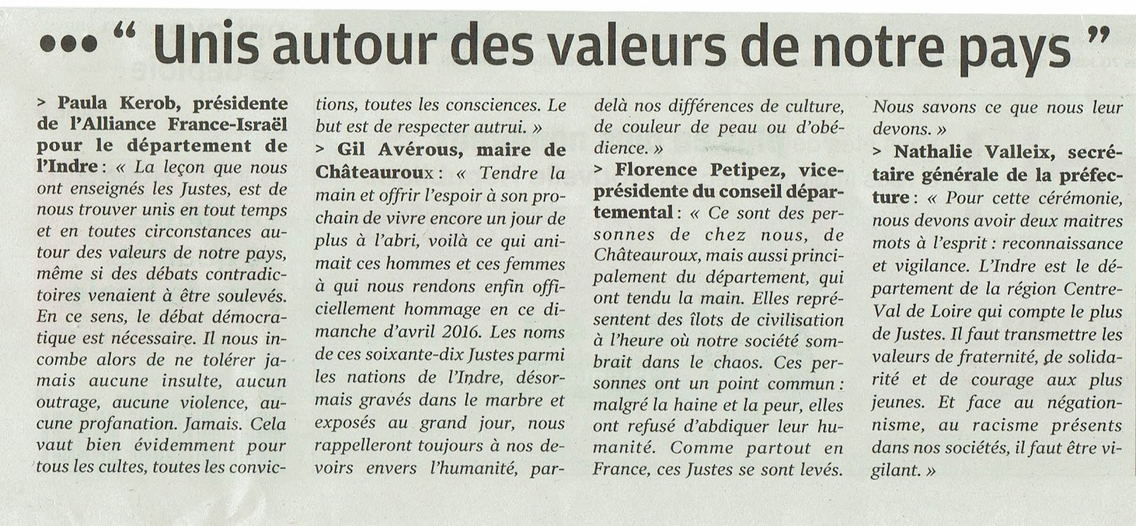 RECONNAISSANCE AUX JUSTES DE L'INDRE